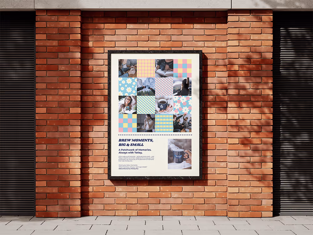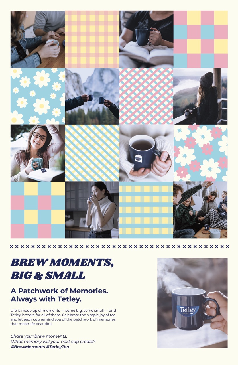 The "Brew Moments, Big & Small" campaign is a marketing initiative including a poster, postcard, and web banner ad. It's goal is to reinforce Tetley’s role as an everyday essential. By emphasizing tea’s presence in daily routines, from a strong morning cup to a relaxing one in the evening, the campaign strengthens Tetley’s emotional connection with customers, positioning it as a warm, approachable, and reliable brand. Targeting tea lovers of all ages, particularly working adults and families, it aims to refresh Tetley’s image in a competitive market while maintaining its legacy. The campaign follows Tetley’s established design system but modernizes it with lifestyle-driven visuals, setting the brand apart by focusing on emotional connection rather than just quality or heritage.