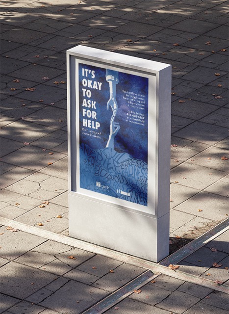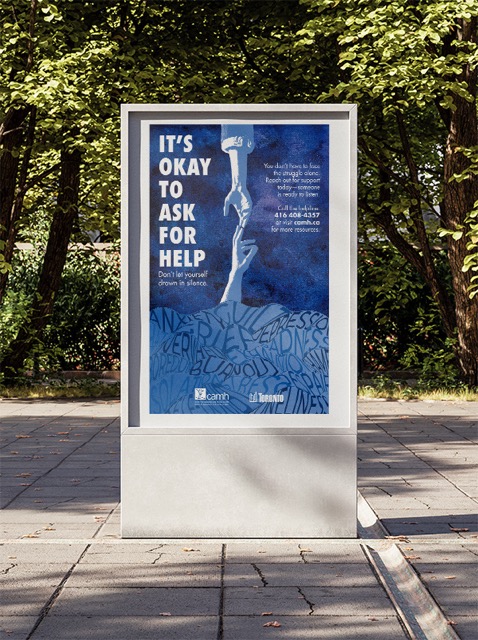 I love how all the elements on this poster blended and worked with each other. The text frames the arms perfectly, and the arms both stand out and blend in. My favourite part was, however, the "sea of feelings" on the bottom part of the poster. I enjoyed combining physical shapes and textures and vector typography.