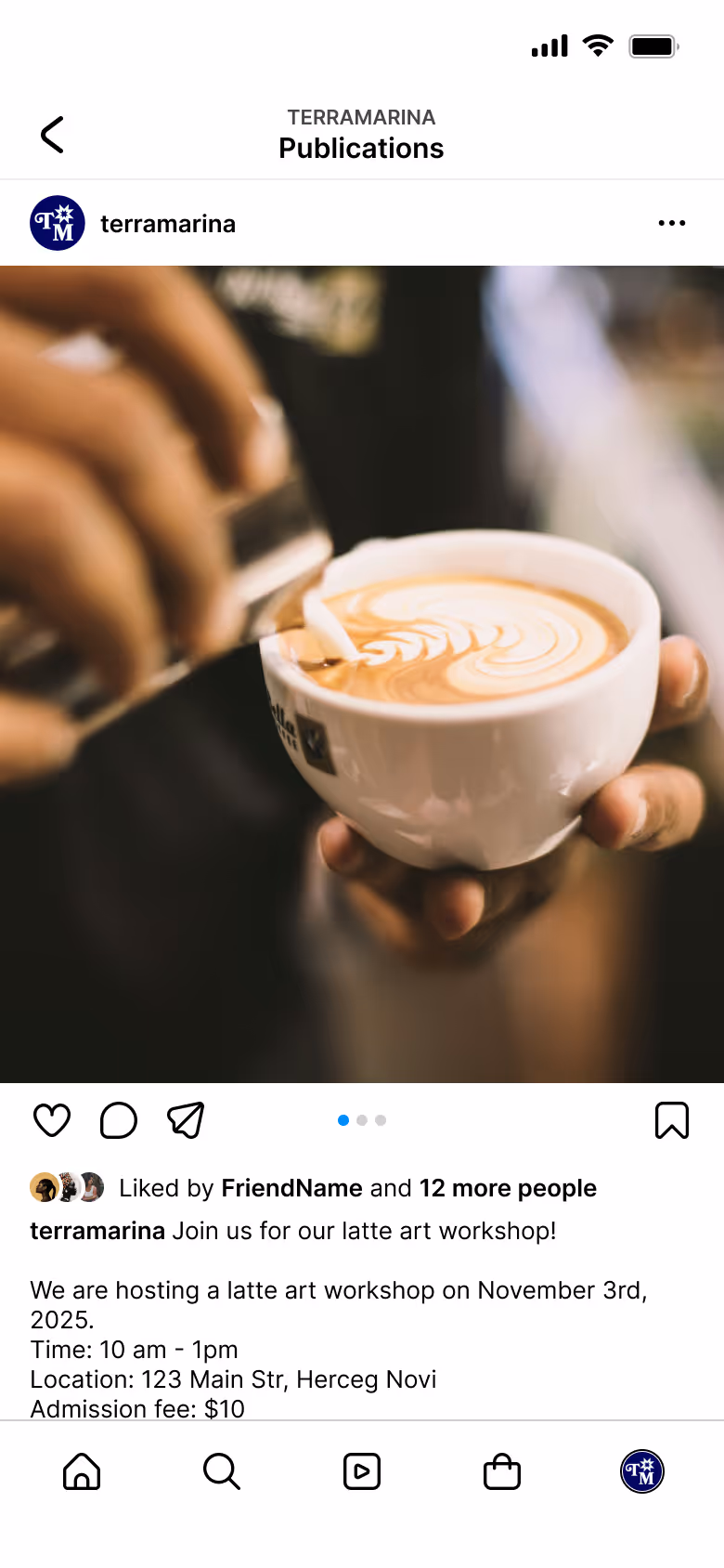 Brand Experience: Terra Marina becomes a place to discover new flavors. Customers are encouraged to try something new: a special seasonal blend, a tea from a specific mountain region. Baristas act as guides, explaining the local origins of the ingredients.